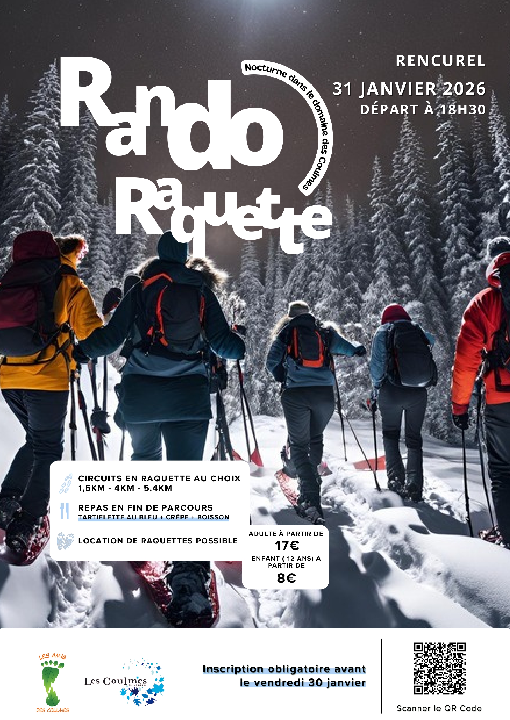 Un événement hivernal à ne pas manquer, entre forêt enneigée, ambiance montagne, effort doux, et réconfort gourmand à l’arrivée.